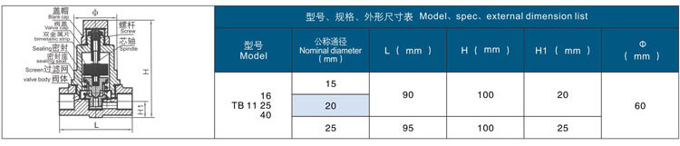是由雙金屬片感溫元件帶動(dòng)閥心進(jìn)行開關(guān)閥門。當(dāng)裝置剛起動(dòng)時(shí),管道出現(xiàn)低溫冷凝水,雙金屬片是平展的,閥芯在彈簧的彈力下處于開啟位置。當(dāng)冷凝水溫度漸漸升高,雙金屬片感溫元件開始彎曲變形,并把閥心推向關(guān)閉位置。在冷凝水達(dá)到飽和溫度之前,疏水閥完全關(guān)閉。閥前始終存有高溫凝結(jié)水,無蒸汽泄漏,節(jié)能效果。