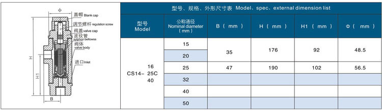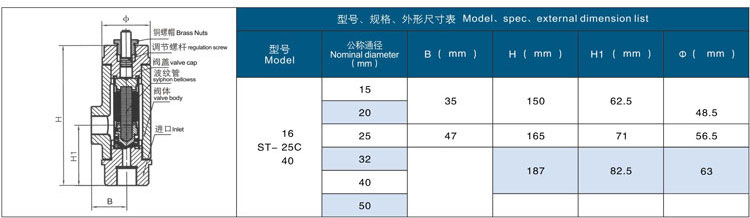 可調恒溫式疏水閥參數(shù)尺寸結構圖: