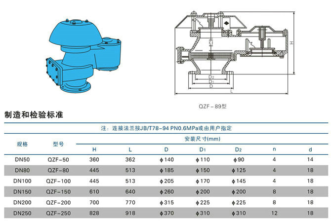 QZF-89型全天候防火呼吸閥安裝在固定頂罐上的通風(fēng)裝置,起減少油品蒸發(fā)損耗,控制儲(chǔ)罐壓力及阻止外界火焰?zhèn)魅氲淖饔谩T撻y具有通風(fēng)量,泄漏量小,耐腐蝕等特點(diǎn),并有靜電接地線,使該閥與罐體保持等。該閥有防凍性能,適用于寒冷地區(qū)。
