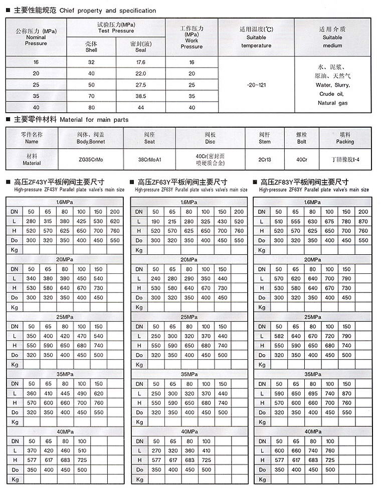 油田平板閘閥采用新型平衡浮動式密封結(jié)構(gòu),適用于壓力不大于40MPa,溫度不高于120℃的油、天然氣等管線上,作為控制介質(zhì)的啟閉及調(diào)節(jié)裝置,該產(chǎn)品結(jié)構(gòu)設(shè)計新穎、選材恰當(dāng)、測試嚴(yán)格、操作輕便,具有較強的防腐、耐磨、耐沖蝕性能,是石油、天然氣工業(yè)界一種理想的新型裝備。