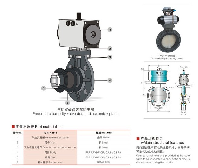 氣動塑料蝶閥(RPP.CPVC.UPVC.PVDF,PTFE)等詳細(xì)資料: