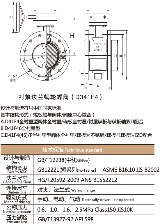 襯氟蝶閥,襯四氟蝶閥,全襯里蝶閥尺寸結(jié)構(gòu)圖: