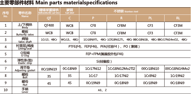 防腐蝕襯氟蝶閥,襯四氟蝶閥,全襯里蝶閥采用對(duì)分兩片閥體組合,閥座與閥體內(nèi)襯一體化,閥門工作時(shí),只有全塑閥座與襯塑蝶板與介質(zhì)接觸,產(chǎn)品可承受“除熔融堿金屬和元素氟”外的任何介質(zhì)腐蝕,其中D71F46閥桿與蝶板(鍛)為一體,表面均勻包覆一層FEP。閥體通道內(nèi)表面光滑,流體阻力小,CV值高,流通能力好,扭矩適中,采用四ji密封結(jié)構(gòu)并在密封面外配以耐溫抗老化的SI橡膠的彈性襯墊閥座,完全達(dá)到介質(zhì)的零泄漏。