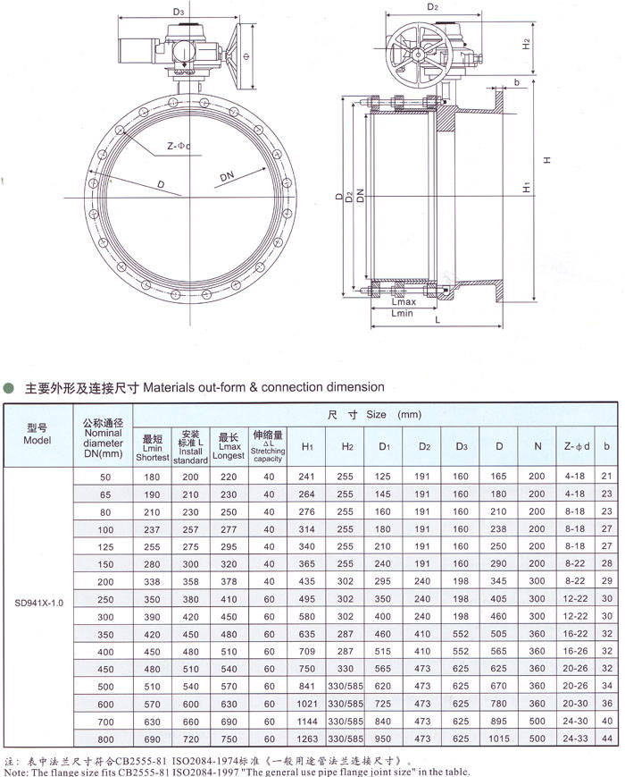 電動伸縮蝶閥,SD943H電動伸縮蝶閥性能參數(shù)