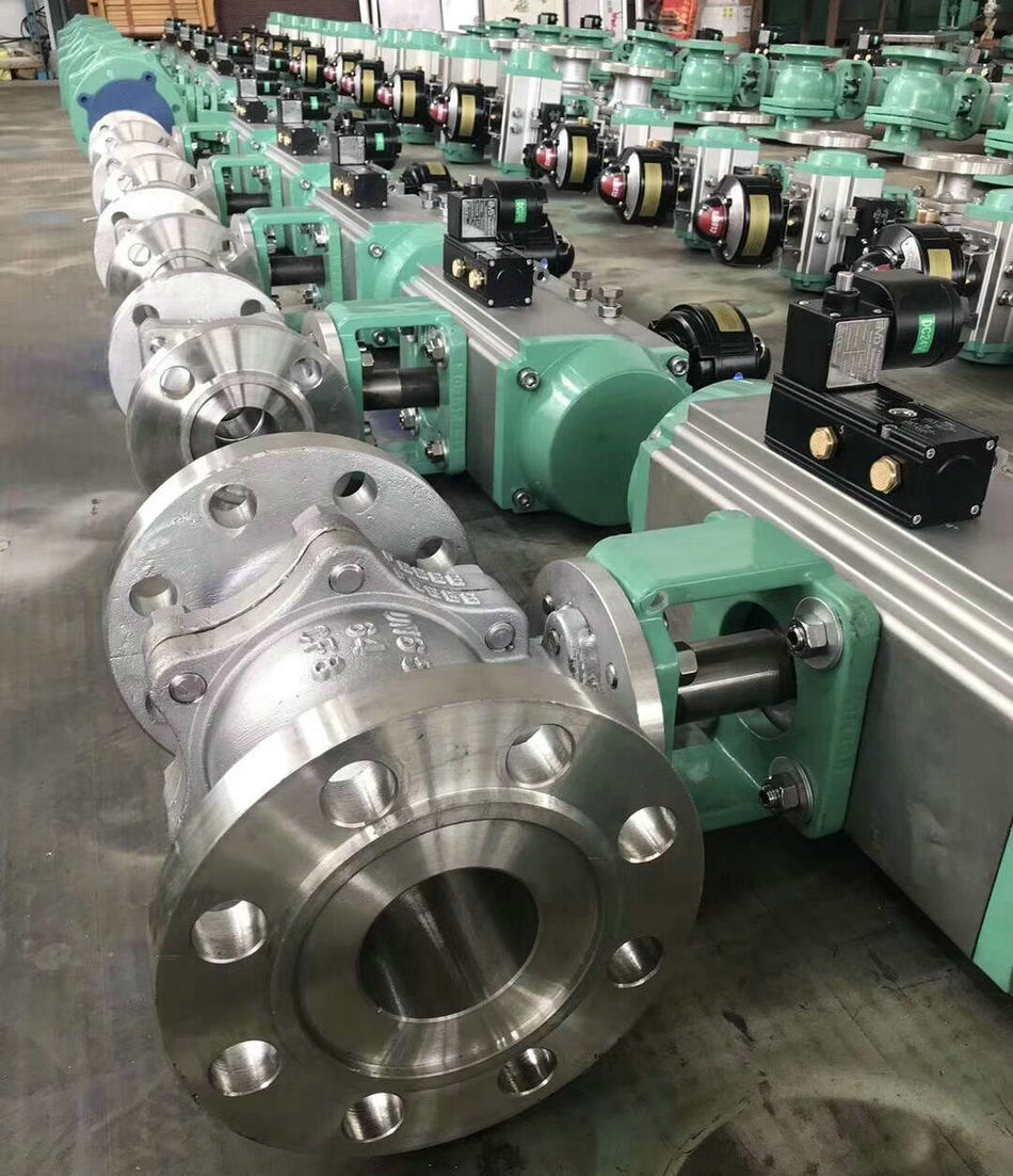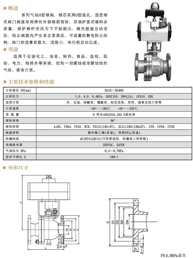 ZSJQ氣動調節(jié)球閥是采用角行程氣動執(zhí)行器及球閥組成。氣動調節(jié)球閥是一種轉角為90°的旋轉類球閥,也可稱為"氣動O型調節(jié)球閥"。氣動調節(jié)球閥采用智能控制與定位,與電氣閥門定位器配套,輸入4~20mADC信號及0.4~0.7MPa氣源即可控制運轉,實現對壓力、流量、溫度、液位等參數的調節(jié)。氣動調節(jié)球閥是以壓縮空氣為動力,閥桿帶動閥芯在閥體內轉動90°可以實現全開/全閉的動作。氣動調節(jié)球閥按其密封性能分為金屬密封與軟密封。氣動調節(jié)球閥具有結構緊湊、體積精小、運行可靠、密封性好、維修容易、安裝方便、適應性等特點。氣動調節(jié)球閥特別適合于介質是粘稠、含顆粒、纖維性質的場合。氣動調節(jié)球閥廣泛應用于石油、化工、教學設備、輕工、高壓設備、制藥、造紙等工業(yè)自動控制系統(tǒng)中,作遠距離集中控制或就地控制。