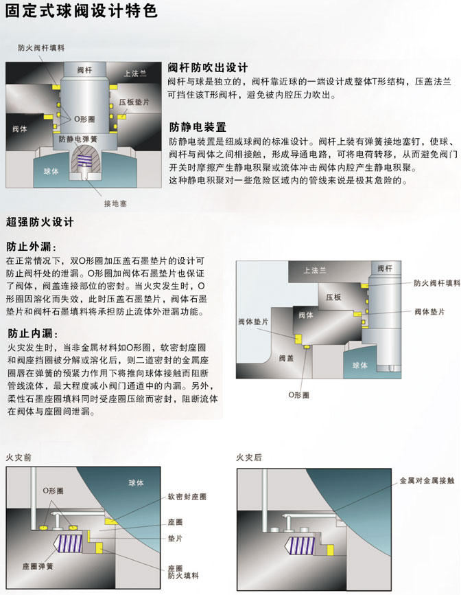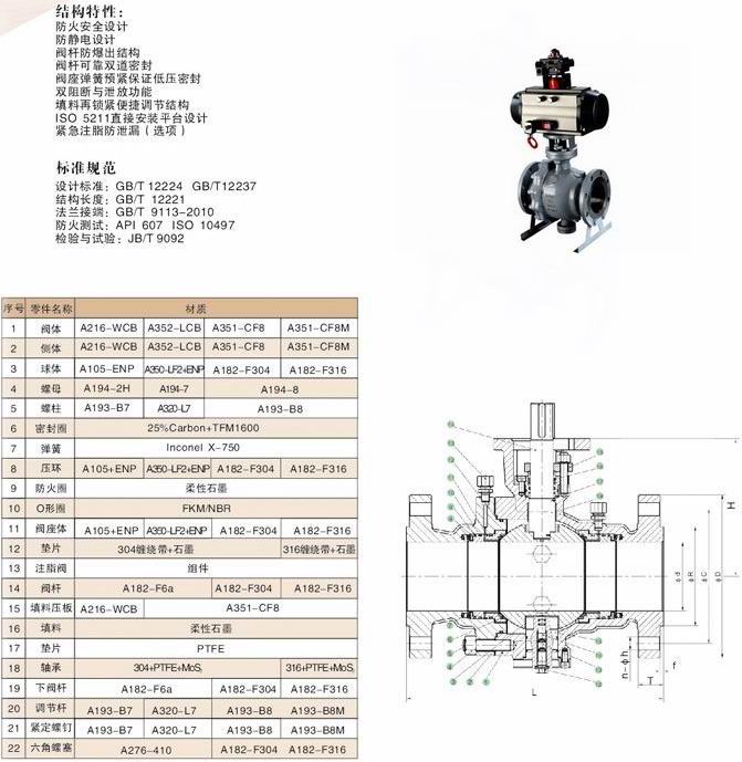 氣動(dòng)固定式球閥,氣動(dòng)固定式法蘭球閥:兩片式和三片式固定球閥又稱測(cè)裝分體式球閥,將閥體沿與閥門通道軸線相垂直的截面分為不對(duì)稱的左右兩半,它在管道上主要用于切斷、分配和改變介質(zhì)流動(dòng)方向。它的樞軸結(jié)構(gòu)準(zhǔn)確的球體位置。標(biāo)準(zhǔn)閥座采用彈簧結(jié)構(gòu),將閥蓋推向球體,好的低壓密封性能。該球閥閥前、閥后閥座都能密封, 即所謂雙向密封特性,利用自帶的排放閥,閥體中腔可向外排放。樞軸采用防爆出保護(hù)結(jié)構(gòu),低摩擦系數(shù)的軸承等?煽啃愿,用途廣泛,價(jià)格合理等。