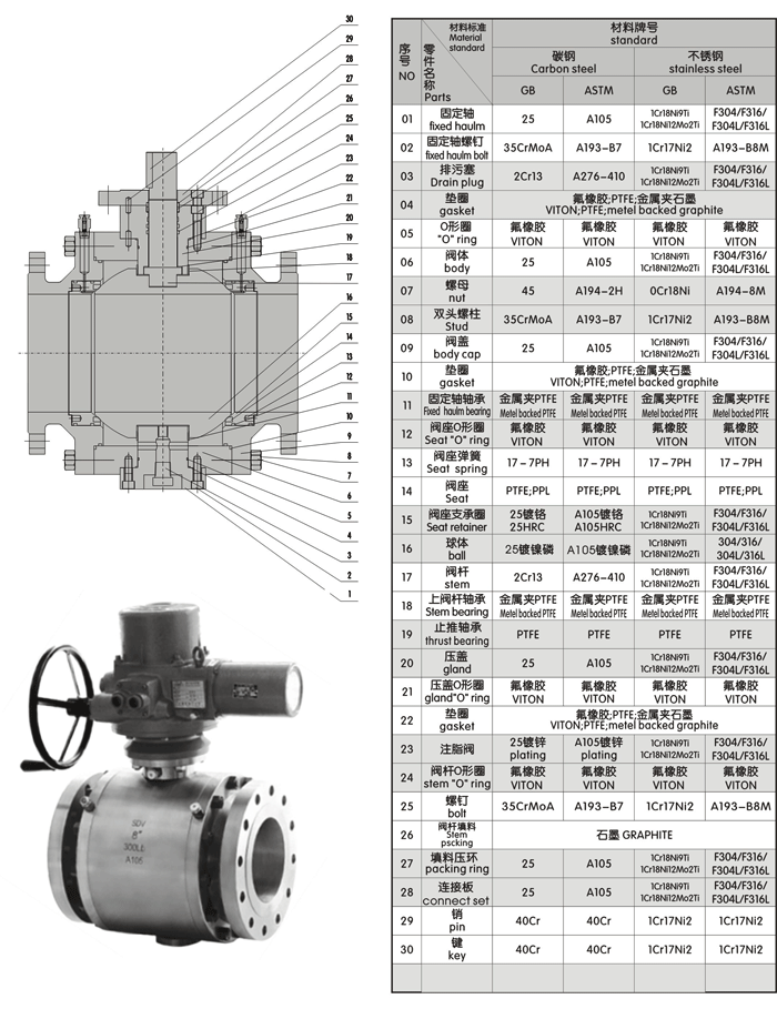 電動(dòng)固定球閥,Q947H電動(dòng)固定式球閥高性能球閥,適用于長輸管線和一般工業(yè)管線,其強(qiáng)度、安全性、耐惡劣環(huán)境性等在設(shè)計(jì)時(shí)進(jìn)行了考慮,適用于各種腐蝕性和非腐蝕性介質(zhì)。它與浮動(dòng)球閥相比,工作時(shí),閥前流體壓力在球體上產(chǎn)生的作用力全部傳遞給軸承,不會(huì)使球體向閥座移動(dòng),因而閥座不會(huì)承受過大的壓力,所以固定式球閥的轉(zhuǎn)矩小、閥座變形小,密封性能穩(wěn)定、使用壽命長,適用于高壓、大口徑場合。先進(jìn)的彈簧預(yù)閥座組件,具有自緊特性,實(shí)現(xiàn)上游密封。每閥有兩個(gè)閥座,每個(gè)方向都能密封,因而安裝沒有流向限制,是雙向。