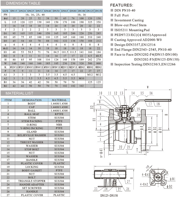 DIN德標球閥,德標高平臺球閥特點設(shè)計標準 :DIN 3357-1,EN12516-1