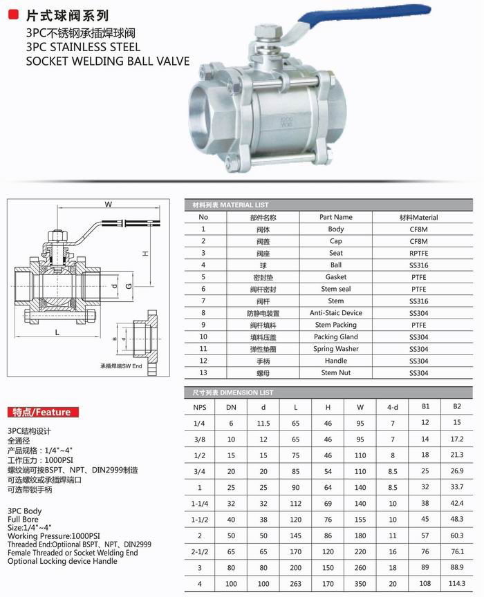 首頁   /  球閥  /  三片式承插焊球閥 咨詢熱線:021-31263381
