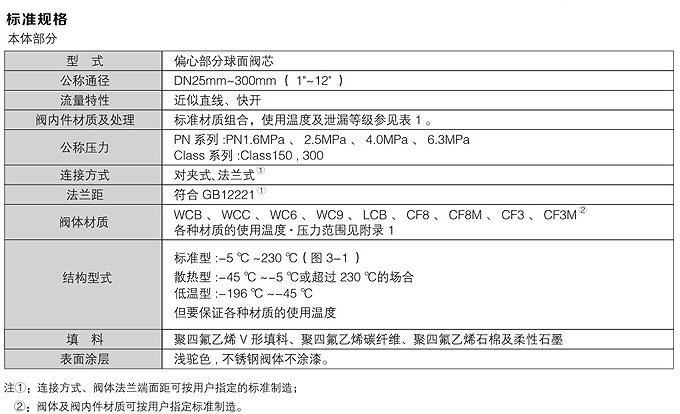 氣動(dòng)偏心旋轉(zhuǎn)閥標(biāo)準(zhǔn)規(guī)格: