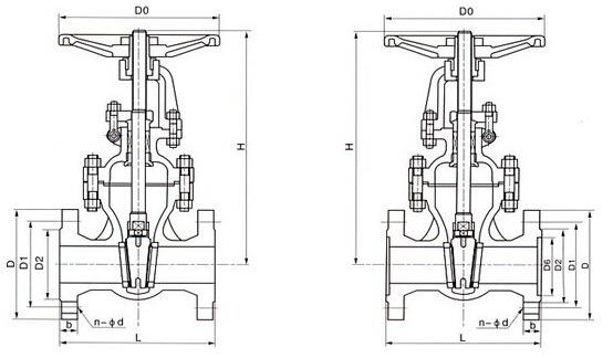手動(dòng)閘閥6.4MPa主要連接尺寸: