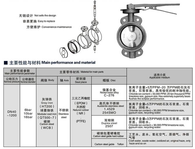 氣動脫硫蝶閥為適應(yīng)石灰石漿液和石膏漿液的腐蝕,閥板和閥桿采用了